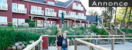Afhængig af vejret kan man vælge at spise inde, hvor den store elg på endevæggen nikker veltilpas velkommen med jævne mellemrum, eller man kan vælge at sidde ude på terrassen med udsigten over søen og Fårup Sommerland.