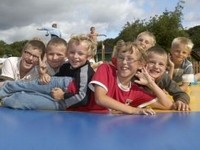 Der er 2 store legepladser på pladsen til de større børn og 2 legepladser for de lidt mindre børn. Der er 3 store hoppepuder, legehuse med klatremuligheder og andre aktiviteter, boldhus. Og så kan børn og barnlige sjæle bygge lige hvad hjertet begærer med kæmpe legoklodser.