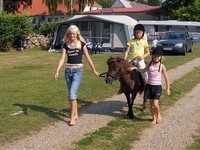 Campingpladsens dyr, to heste, to dværggeder og 6 kaniner, bor i en stald på gården. På Sinebjerg Camping kan du ride på to ponyer som hedder Freja og Louise. Husk også at hilse på pladsens 2 dværggeder som hedder Lotte og Sine, og kaninerne Ninus og Pjuske, samt deres 4 børn.